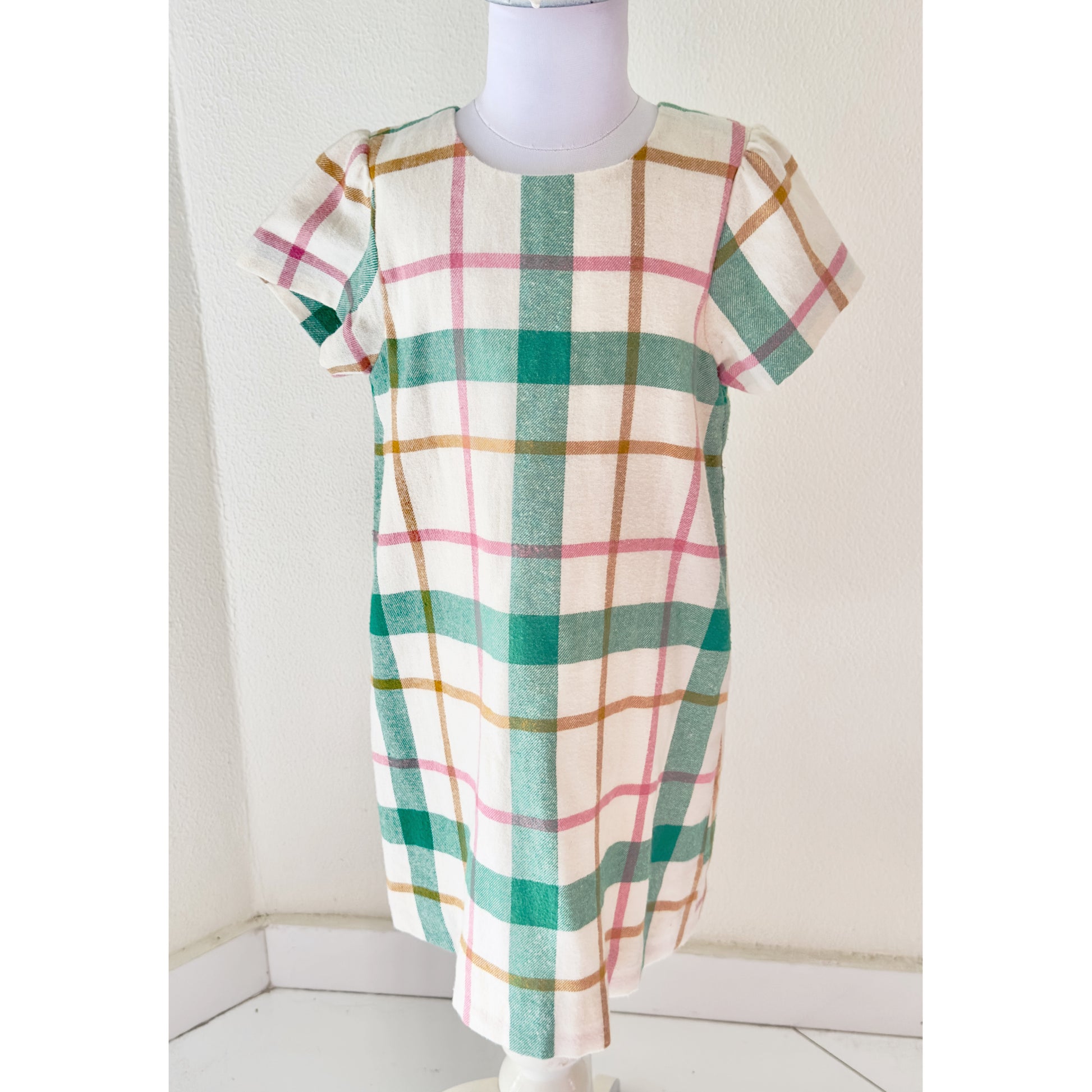 A soft cream tone meets vibrant green lines in this charming Christmas dress. The subtle festive palette adds just the right touch of holiday spirit while keeping the look timeless and classy.
